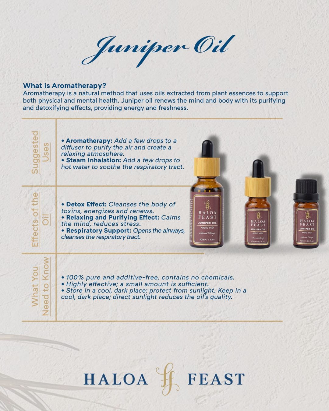 Refresh your body and mind with Haloa Feast Juniper Essential Oil. Order now and bring the miracle of nature into your home! 🌿
