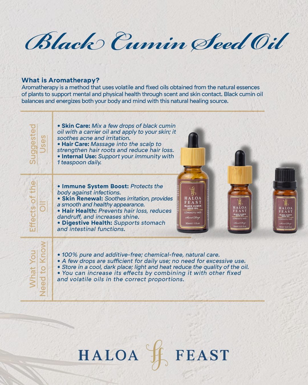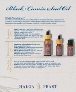 Discover the miracle of nature! Indulge your body and soul with Haloa Feast Black Seed Oil.